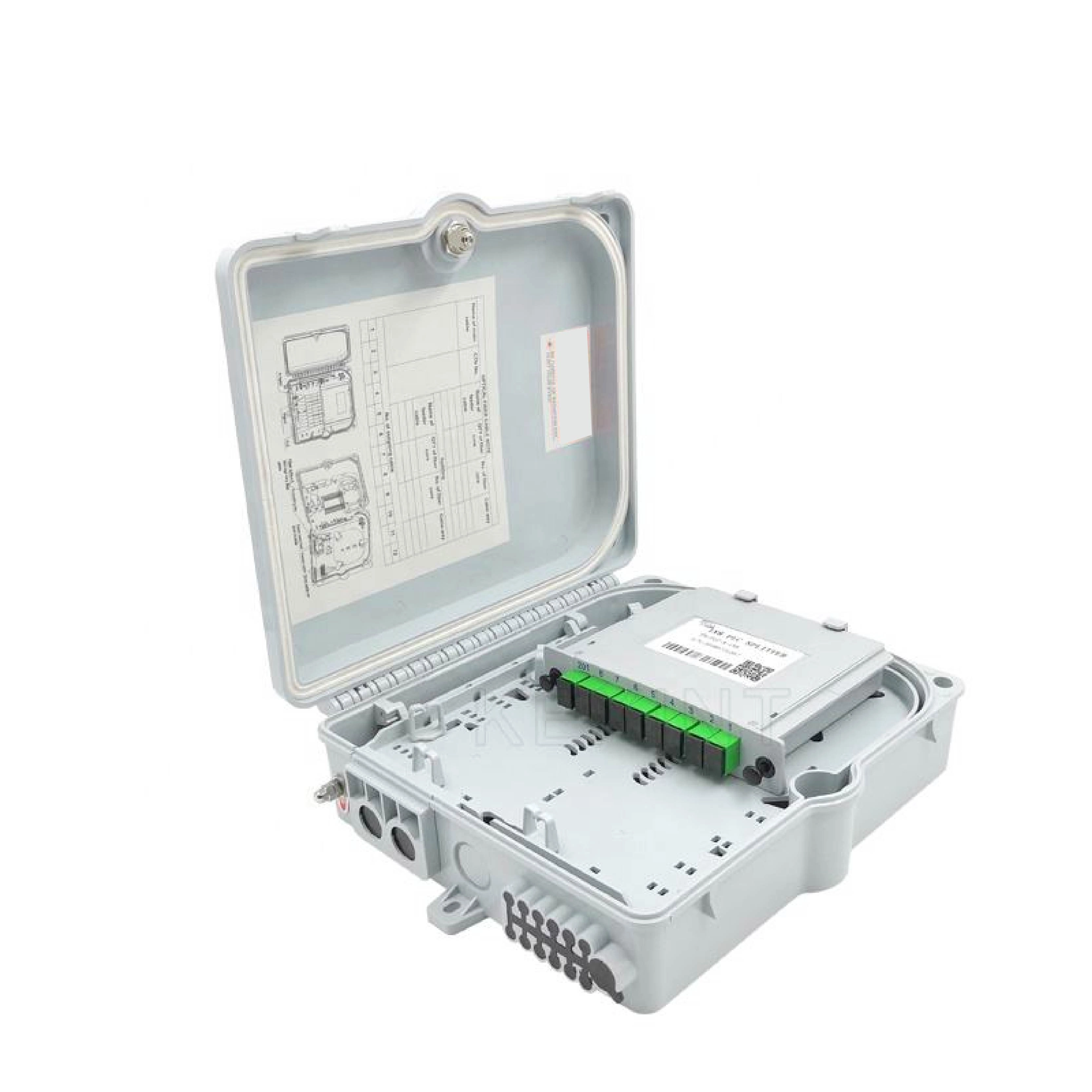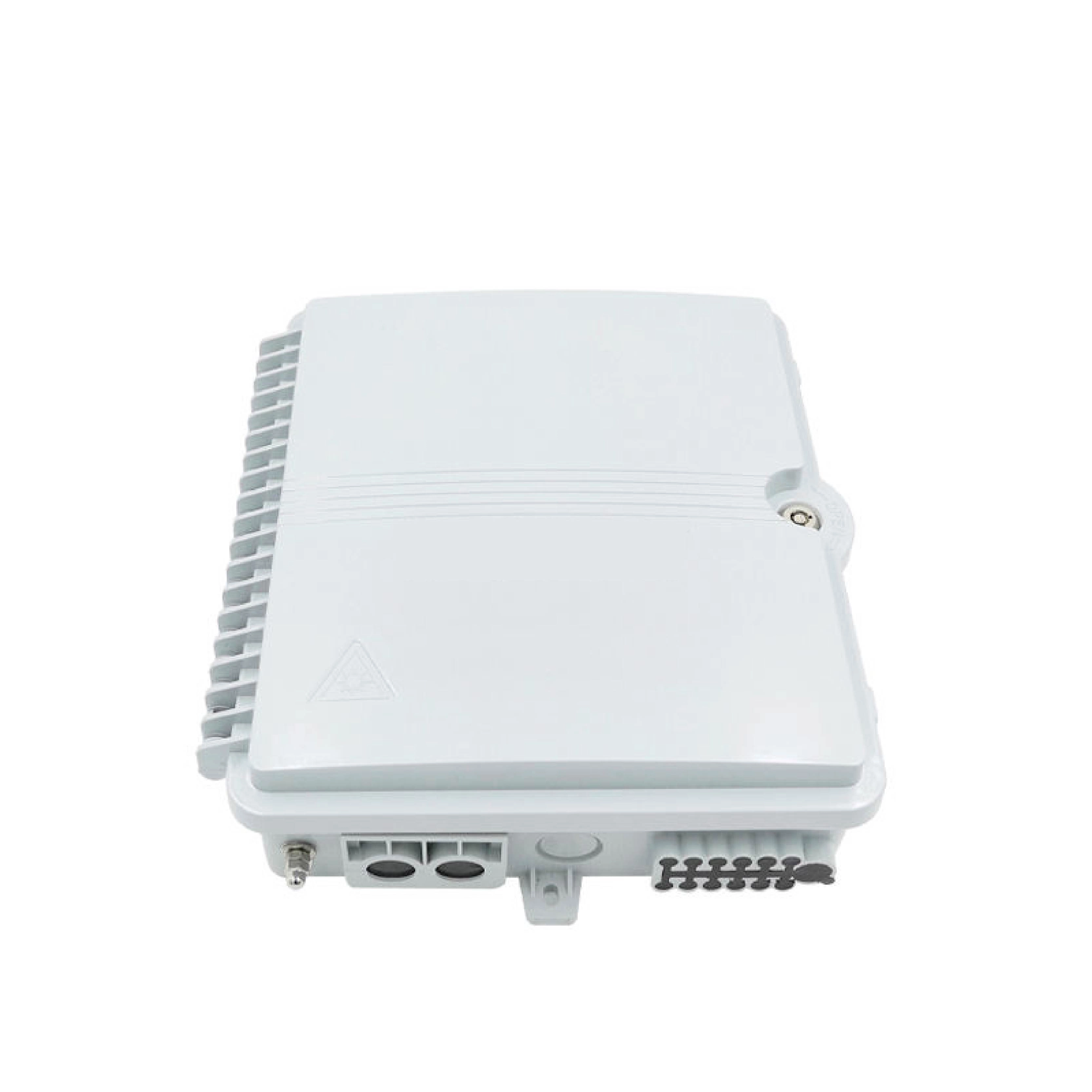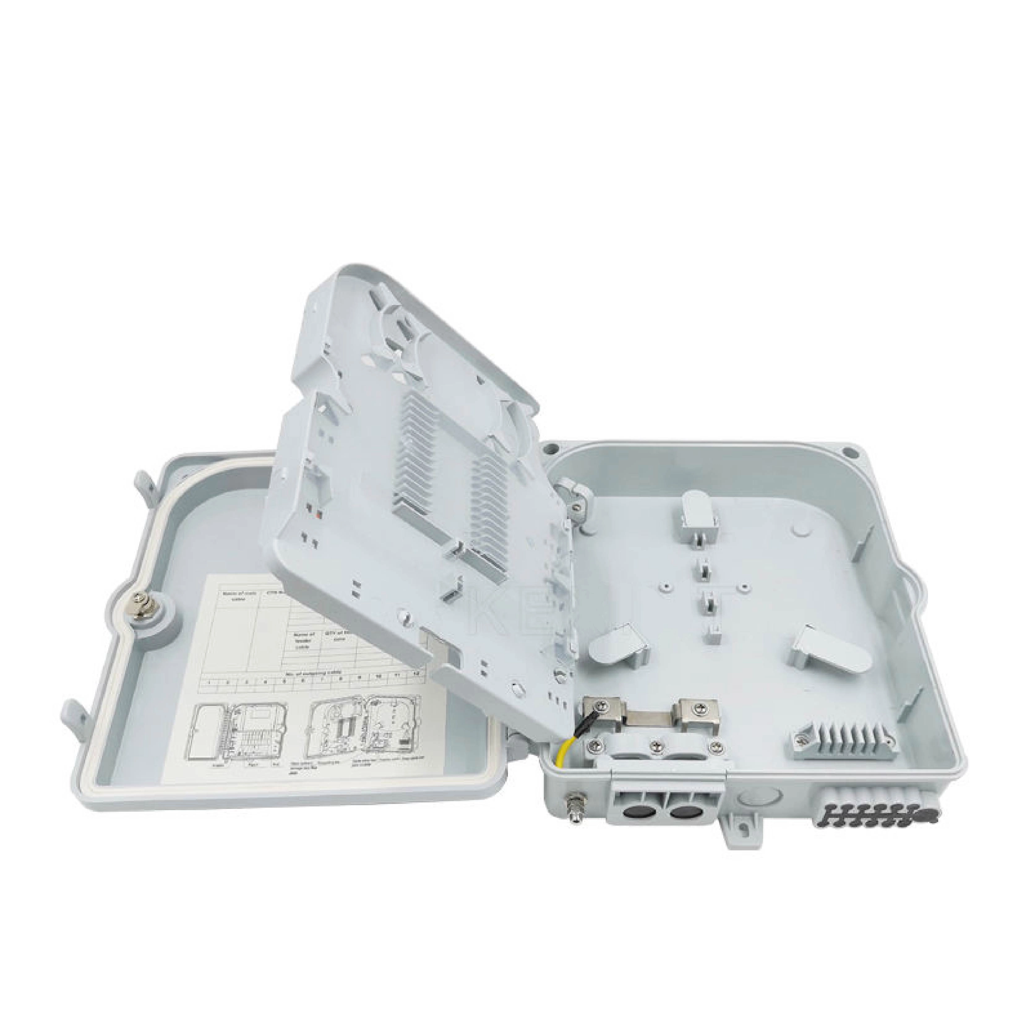 A durable 12-core fiber distribution box (225x200x65mm) in ABS/PC+ABS for secure wall or pole mounted FTTH networks.