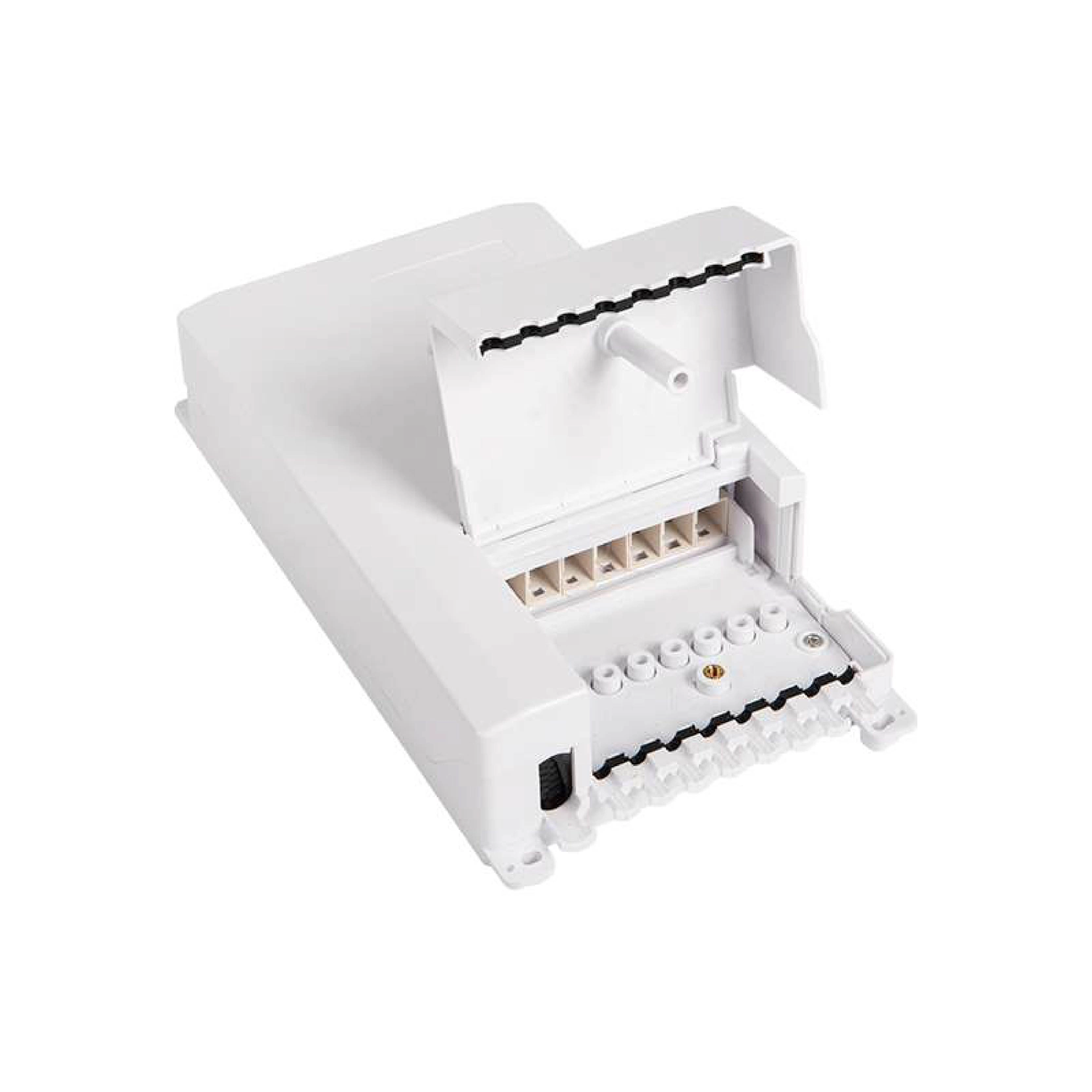 High-density 16-core fiber distribution box for versatile mounting, featuring durable PC+ABS in a compact, white enclosure.