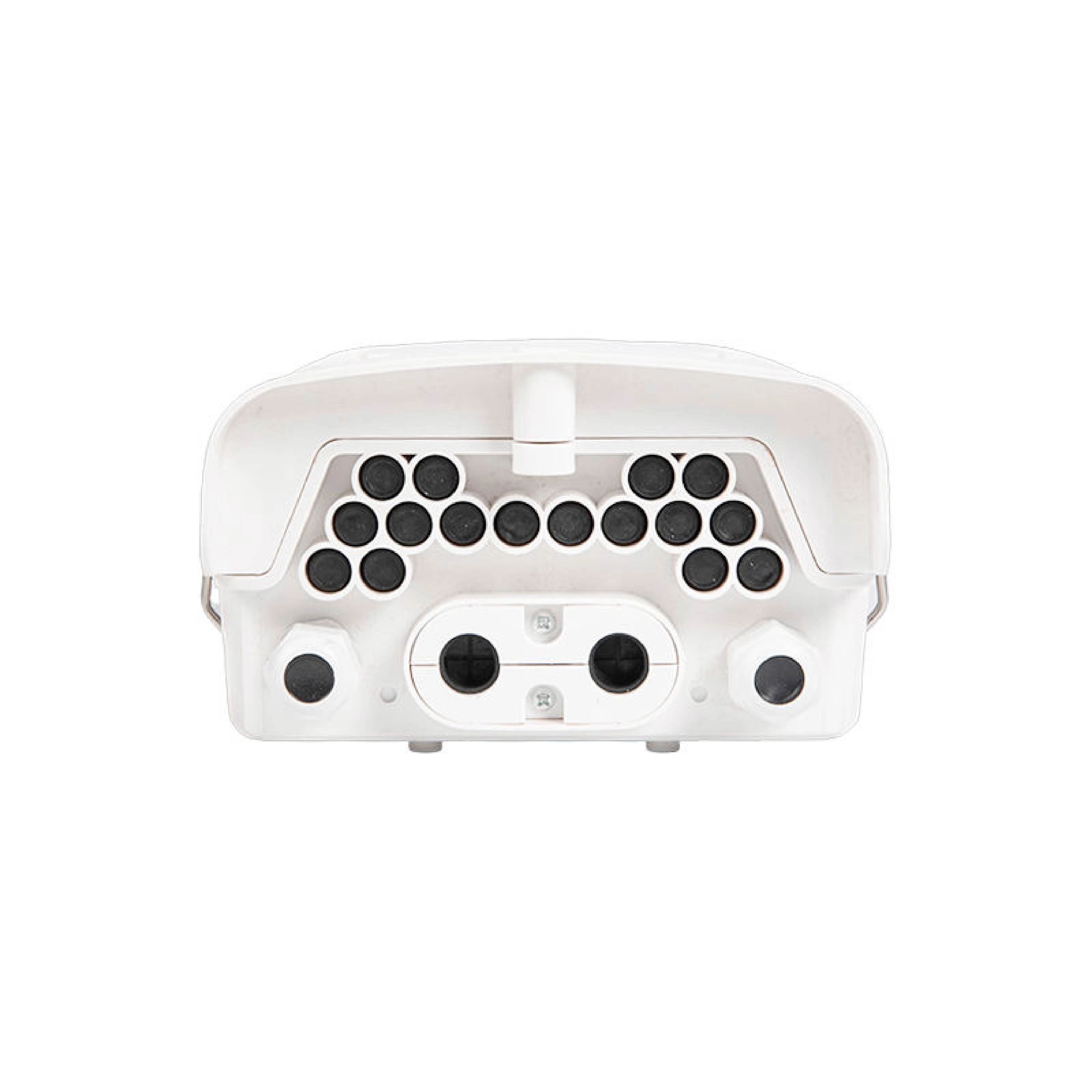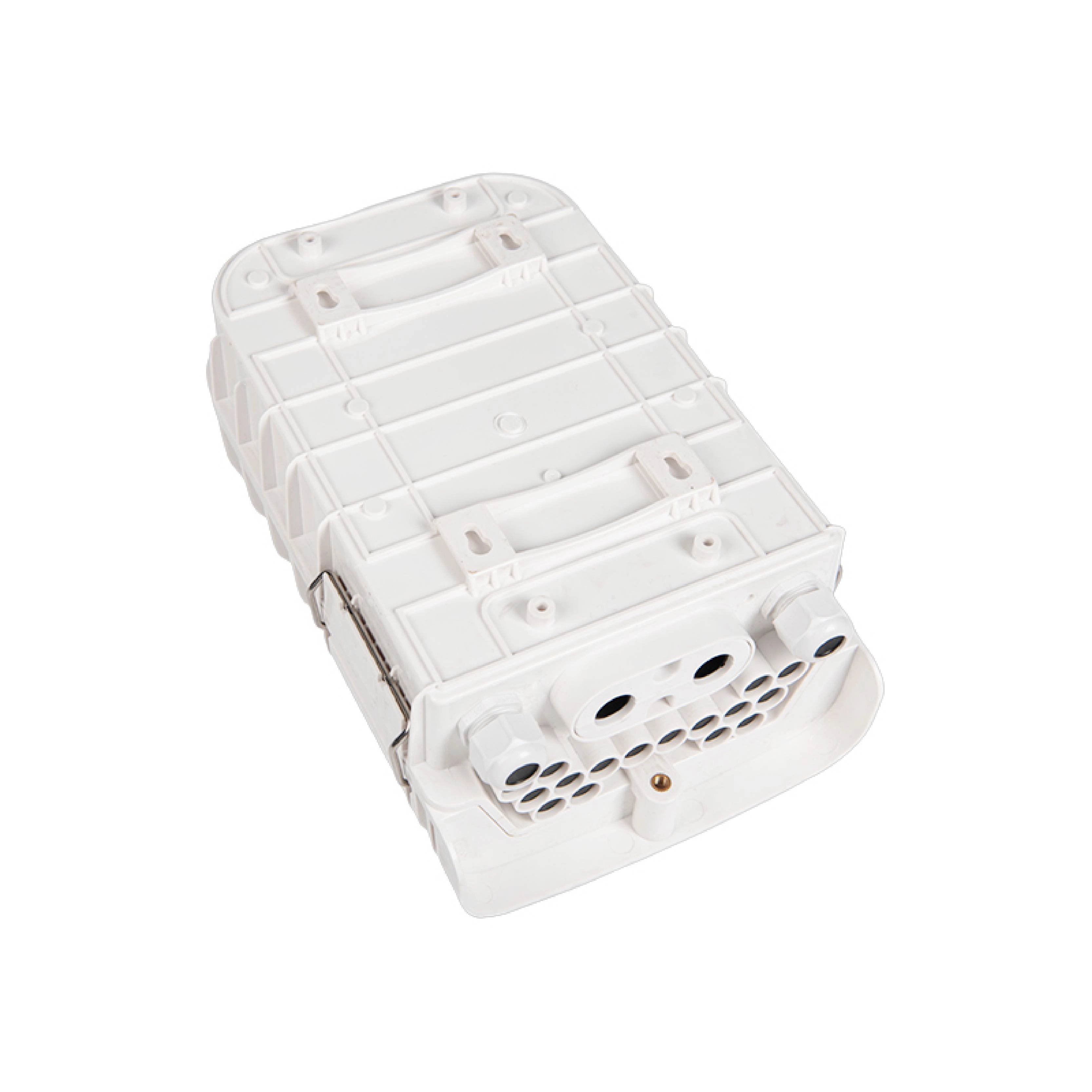 Compact 16-core fiber distribution box for versatile wall or pole mounting, featuring durable ABS/PC+ABS construction in white/black.