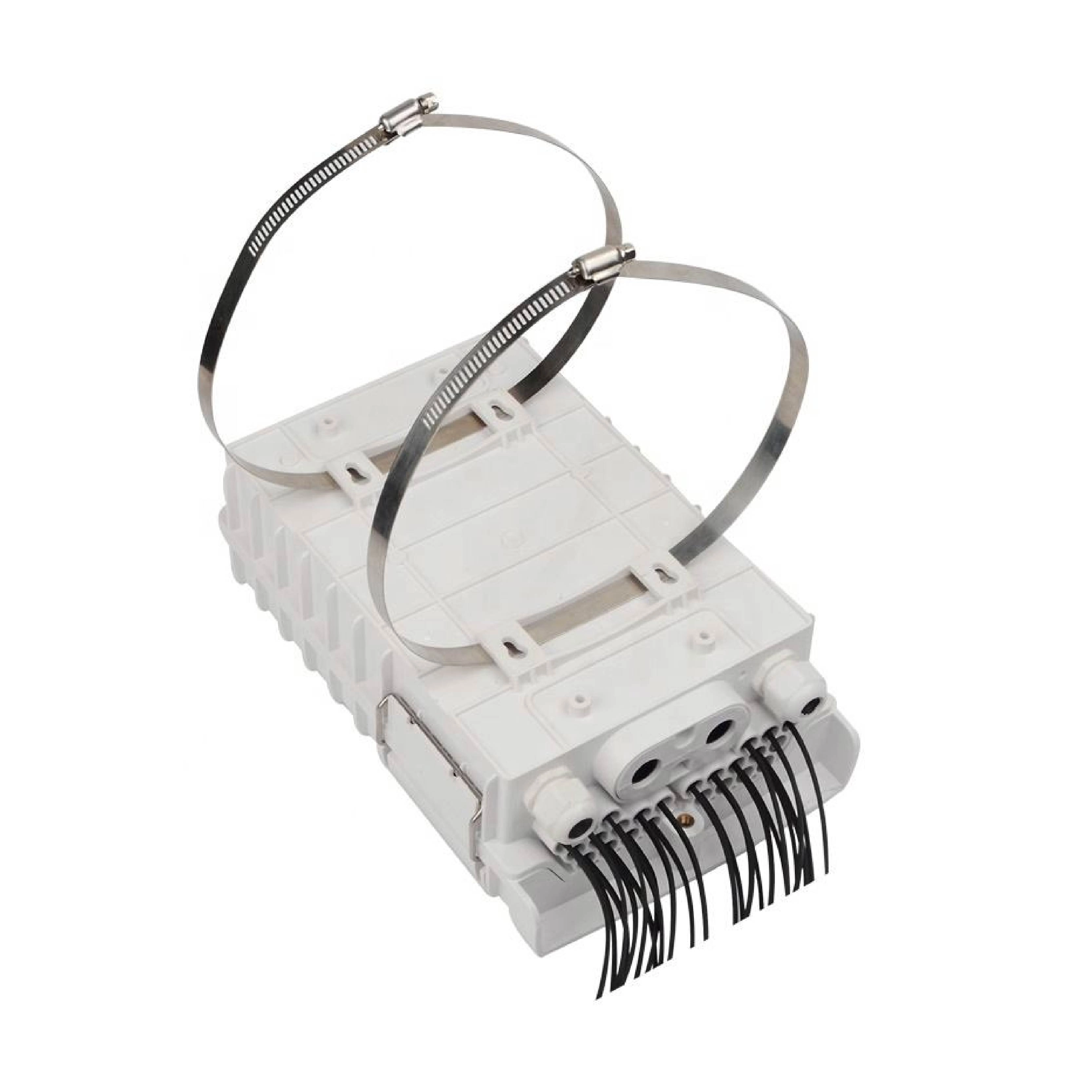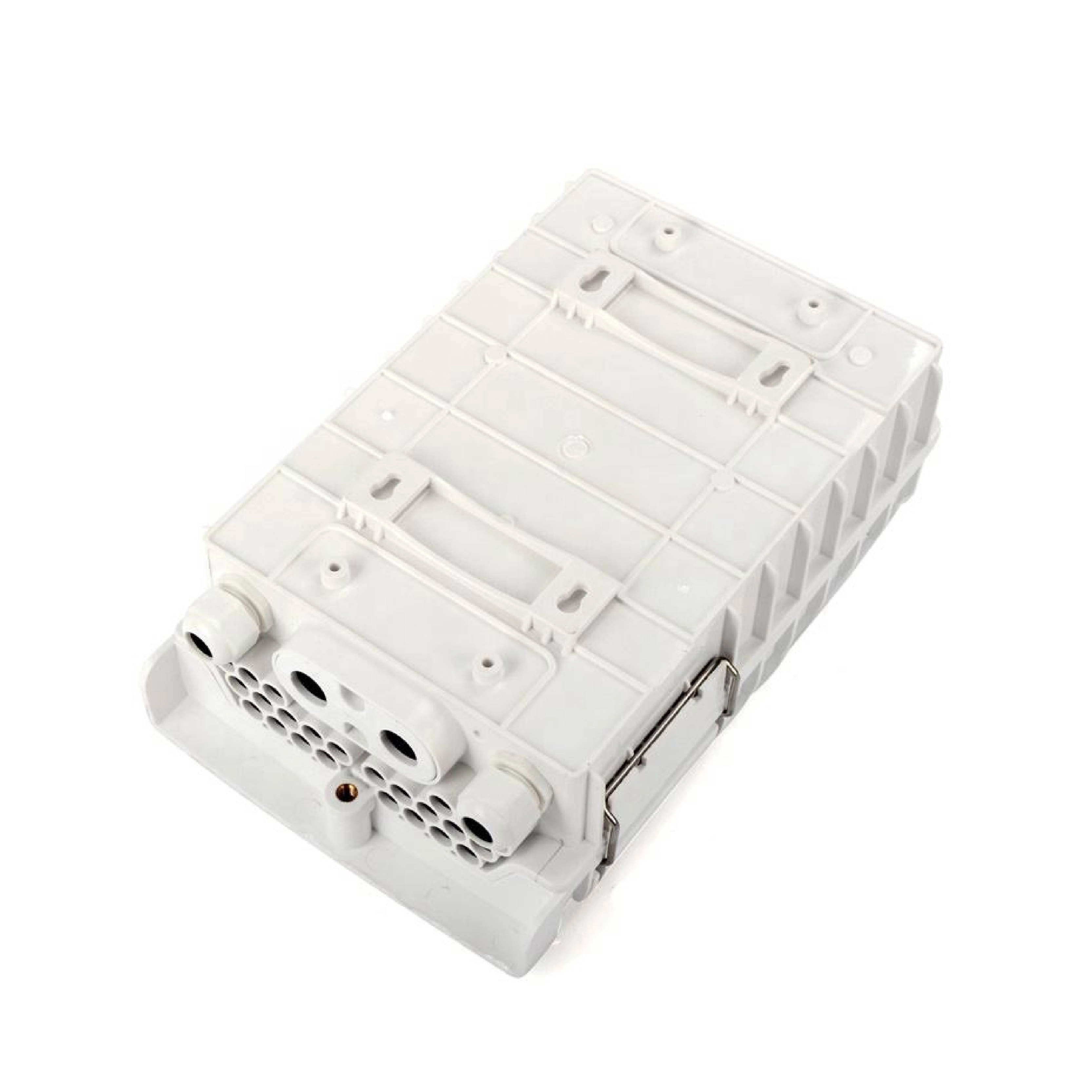 A compact 16-core fiber optic distribution box for wall or pole mounting, constructed with durable ABS/PC+ABS in white or black.