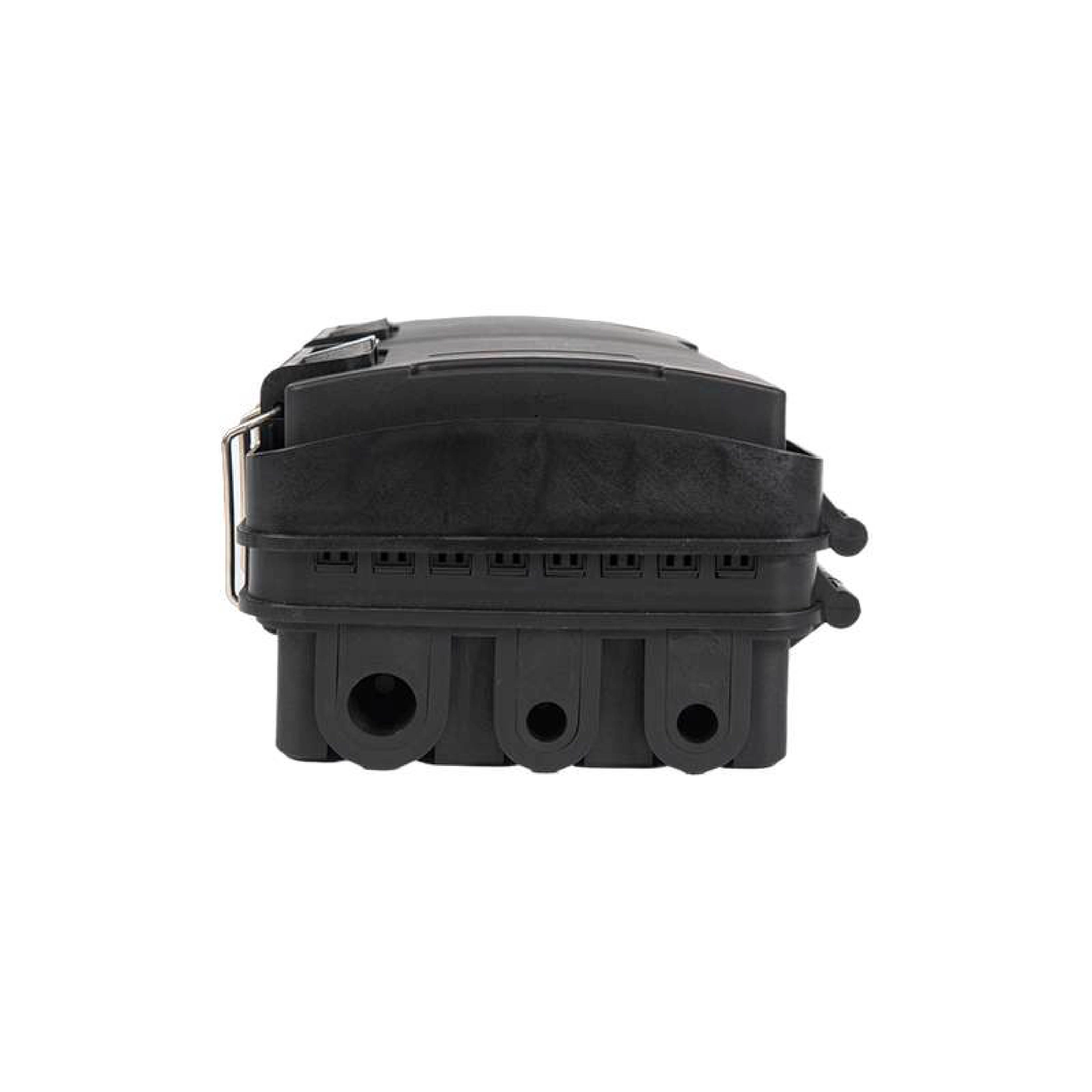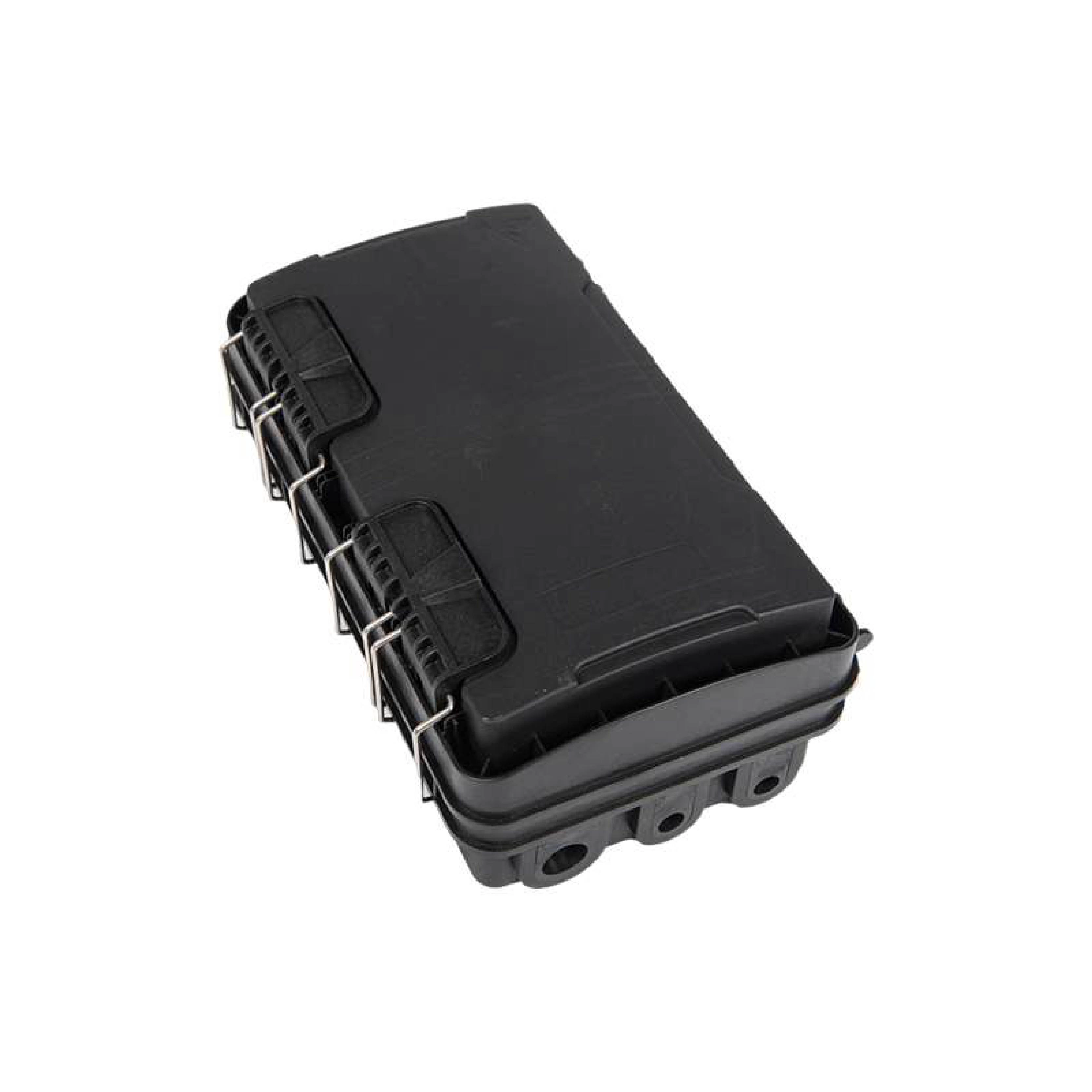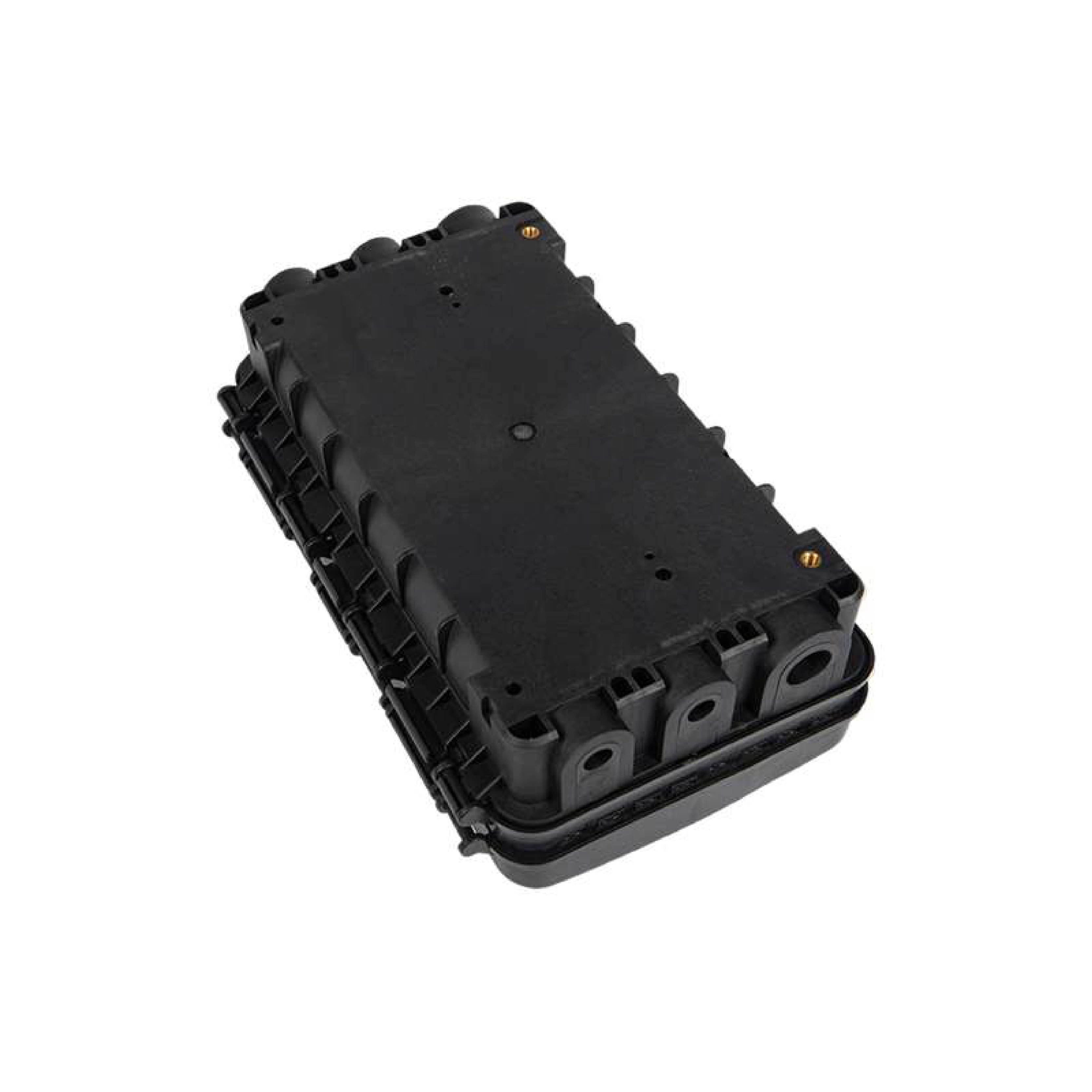 Compact inline fiber splice closure for aerial or pole mounting, featuring reinforced PP+GF housing and 16-core capacity for branch point termination.