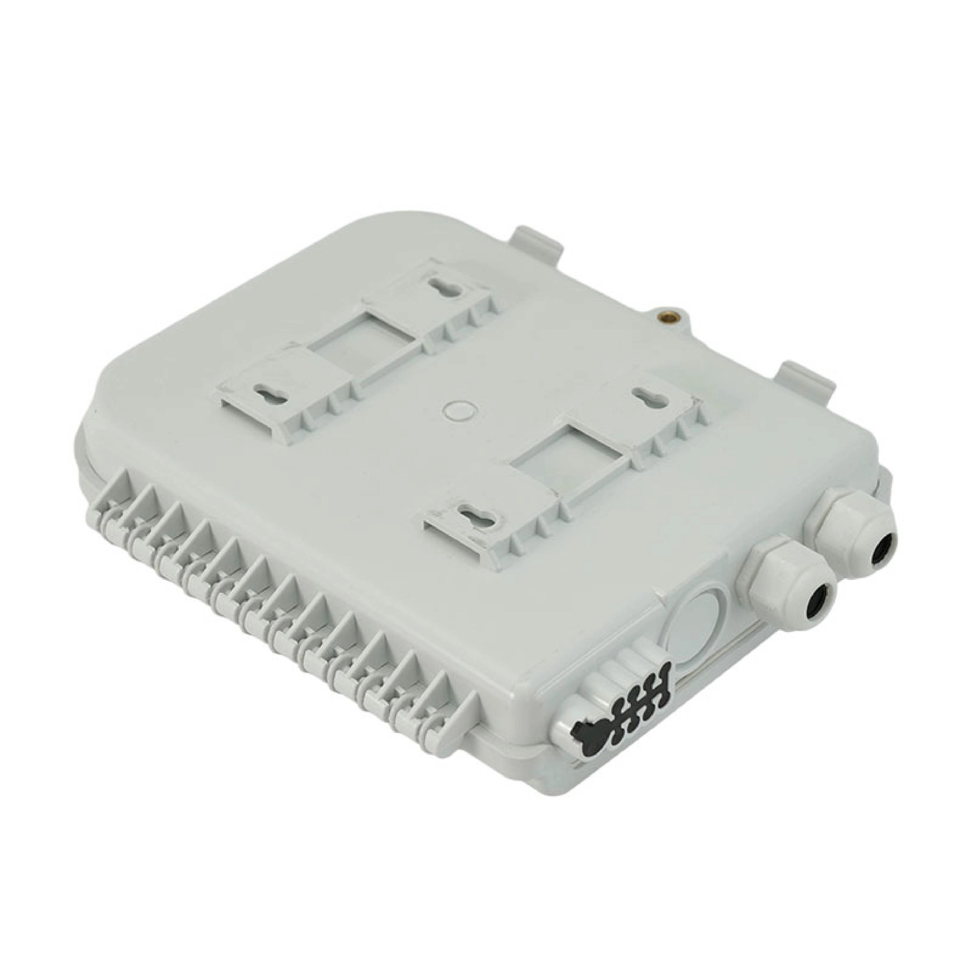 A robust 8-core fiber distribution box (230x180x55mm) in ABS/PC+ABS for secure wall or pole mounted FTTH networks.