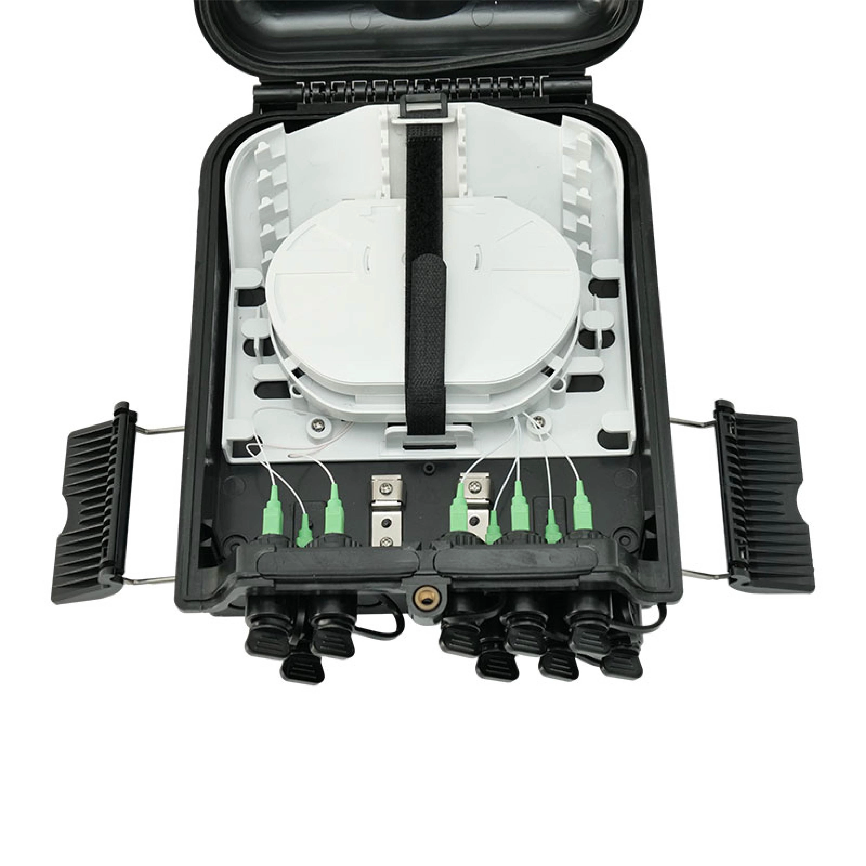 Fiber optic pre-connectorized box is a 9-core IP67 PC+ABS distribution hub designed for high-efficiency, plug-and-play outdoor FTTH network deployment.