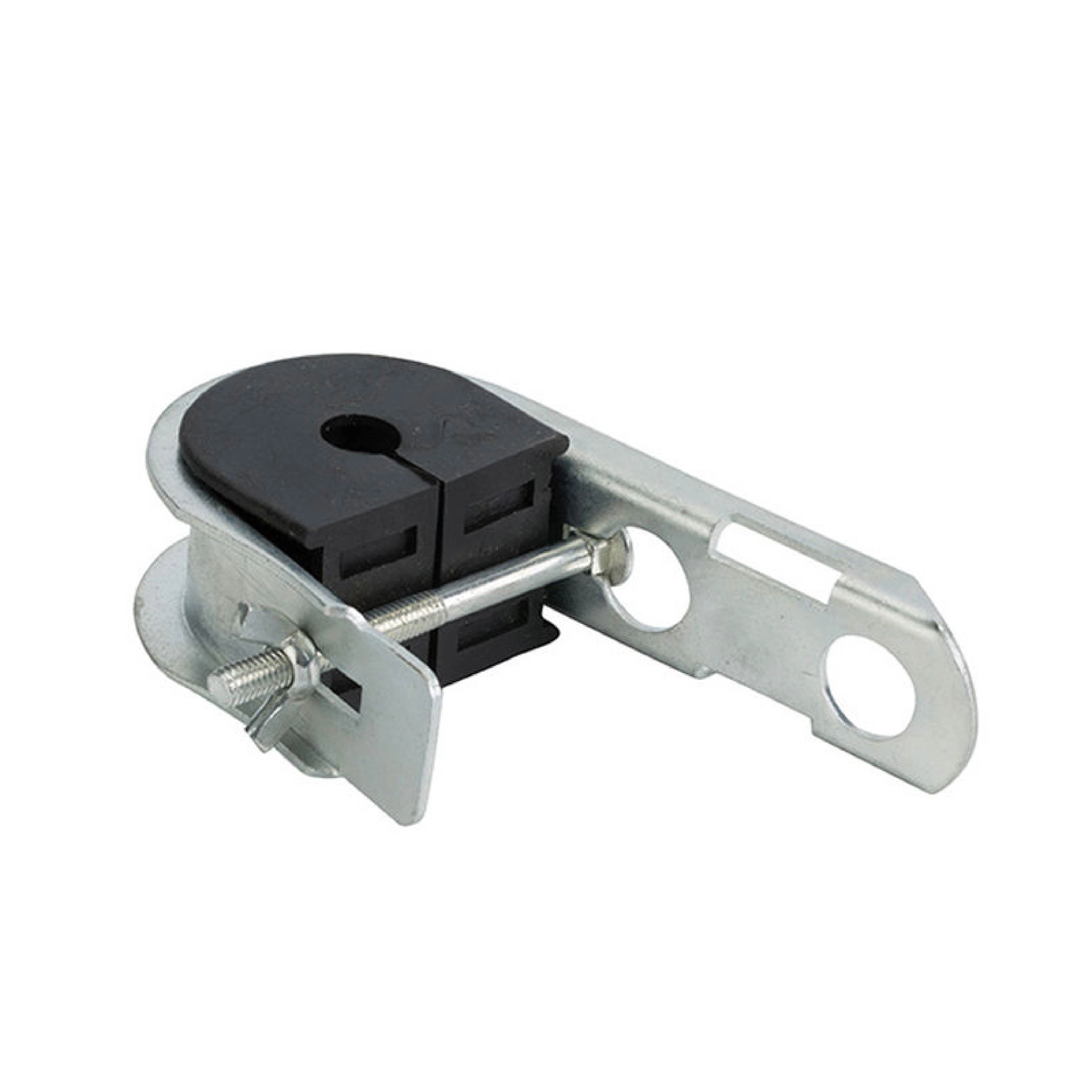 Crossarm pole bracket made of galvanized steel for durable and rust-resistant cable support.