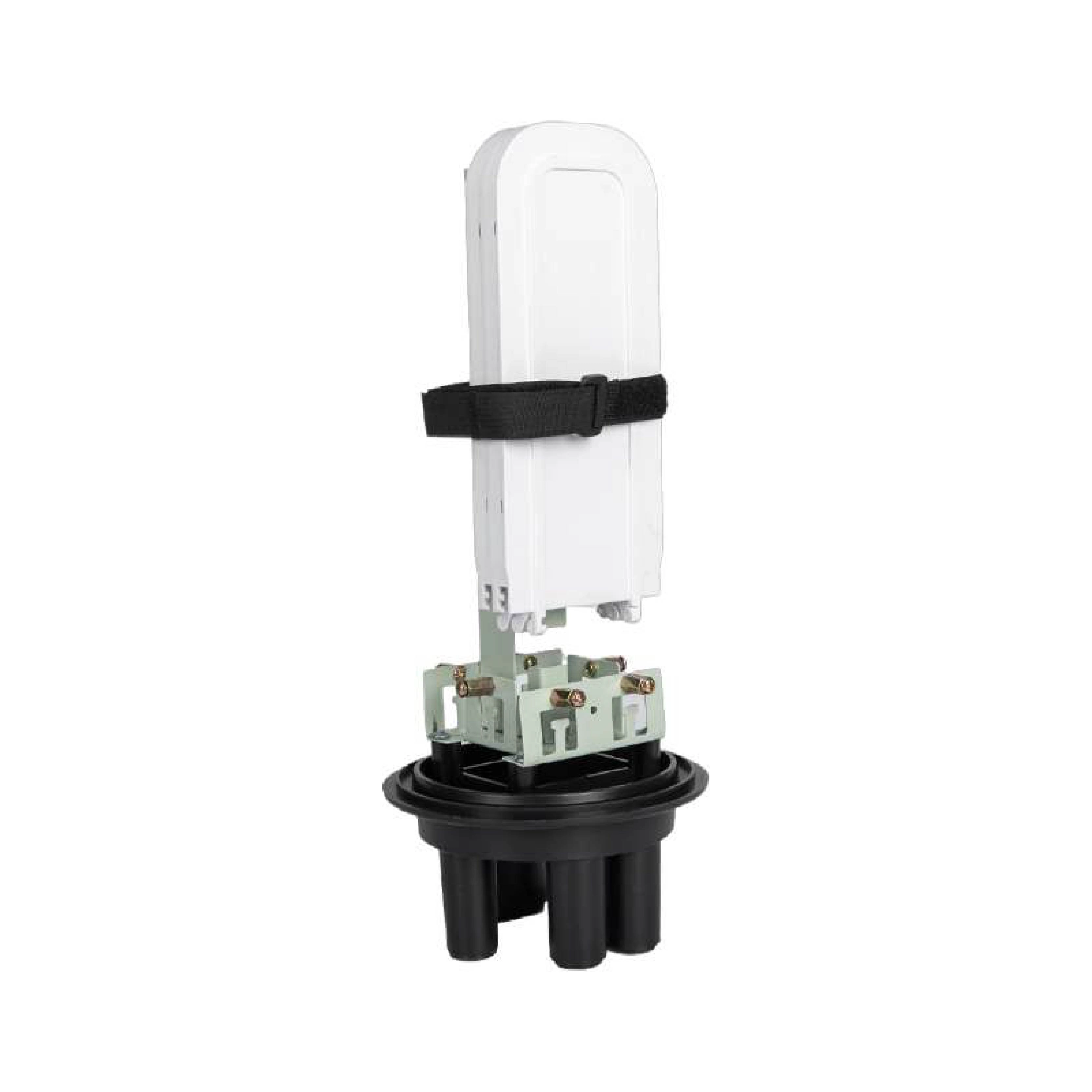 High-capacity dome splice closure for aerial/pole/duct mounting, scalable to 72 fibers with reliable heat-shrink sealing and 4+1 ports.