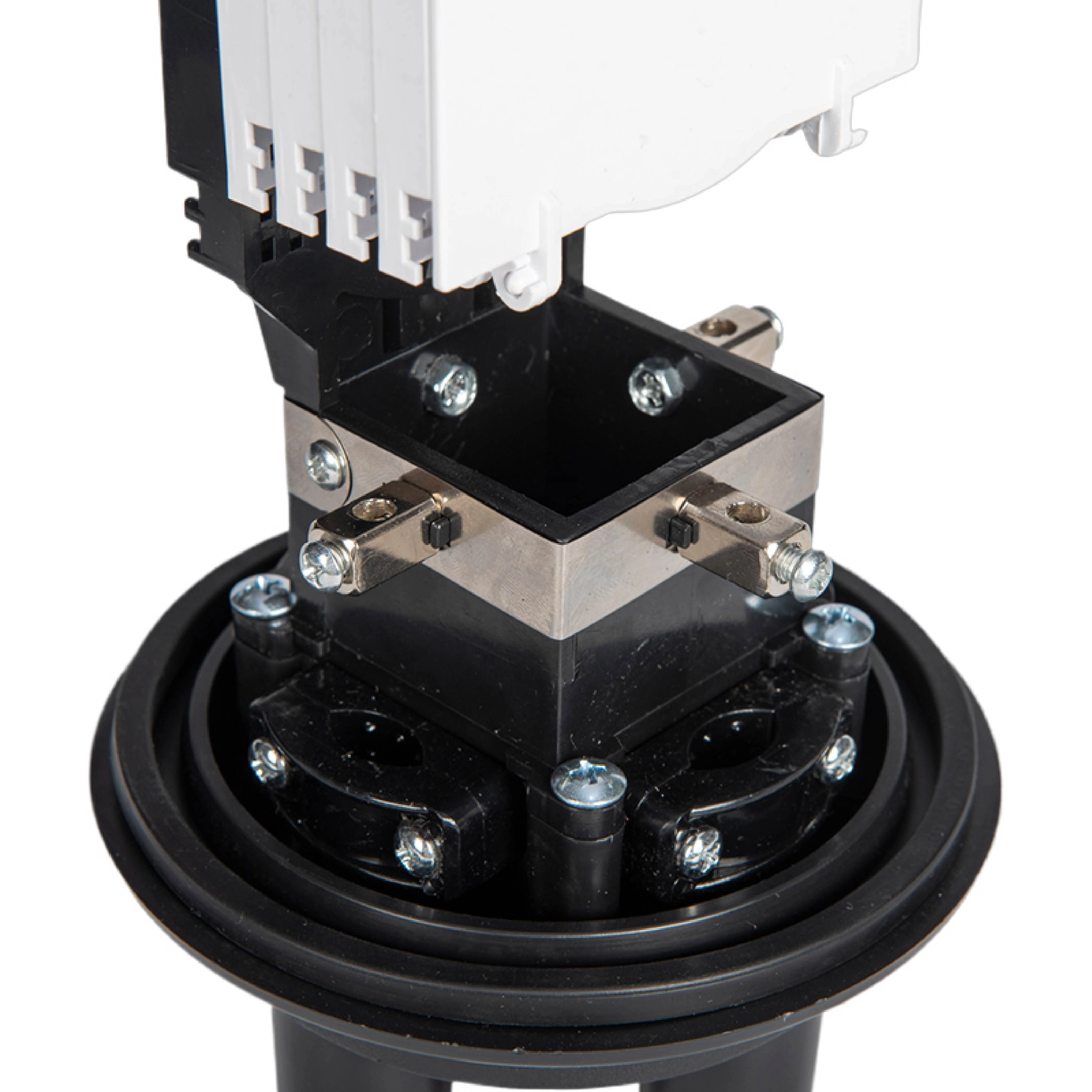 Durable dome splice closure for aerial/pole/duct mounting, featuring scalable 12-48 fiber capacity with heat-shrink sealing for reliable protection.