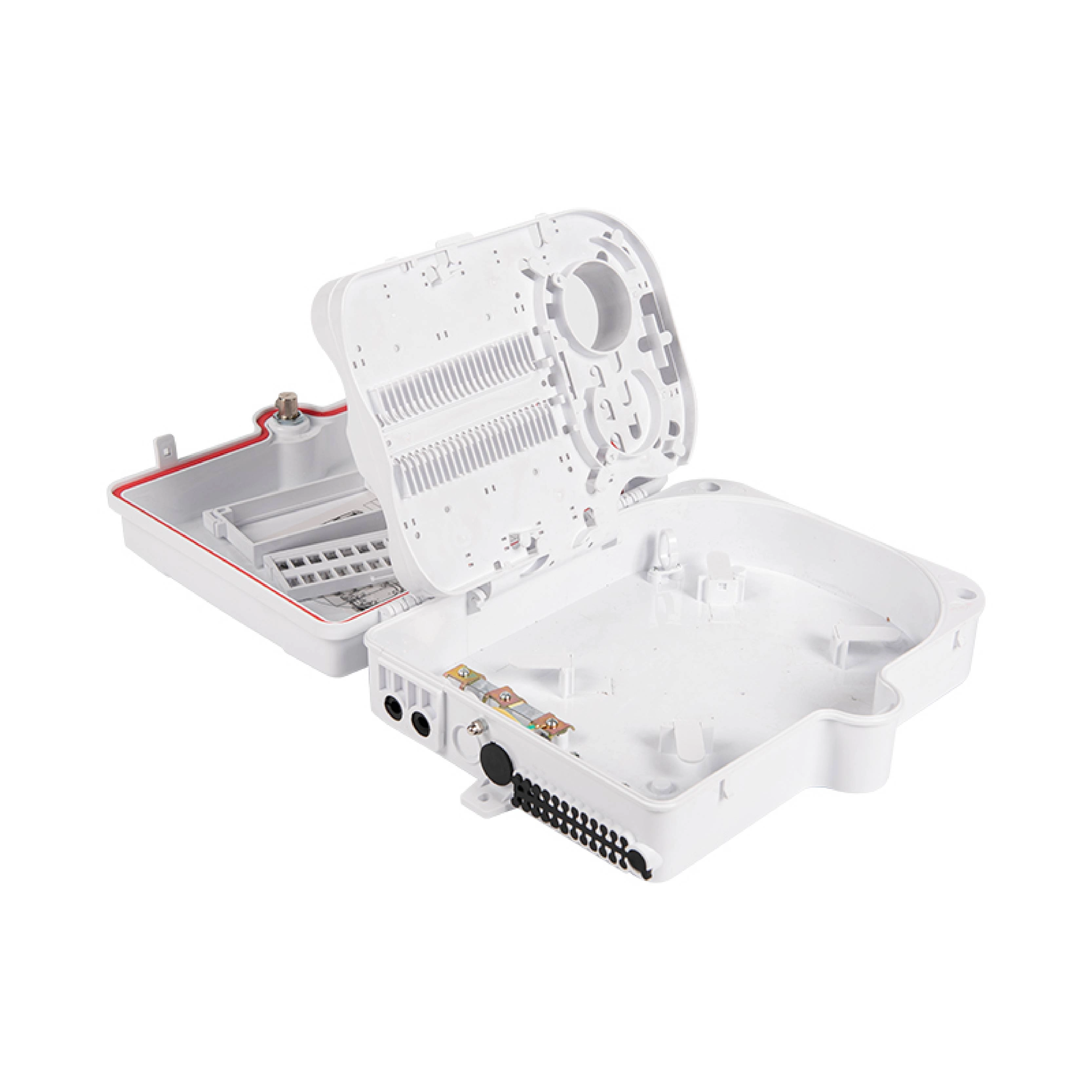 24-core fiber distribution box for wall/pole mounting, made of durable ABS/PC+ABS, offering compact protection for FTTH networks.