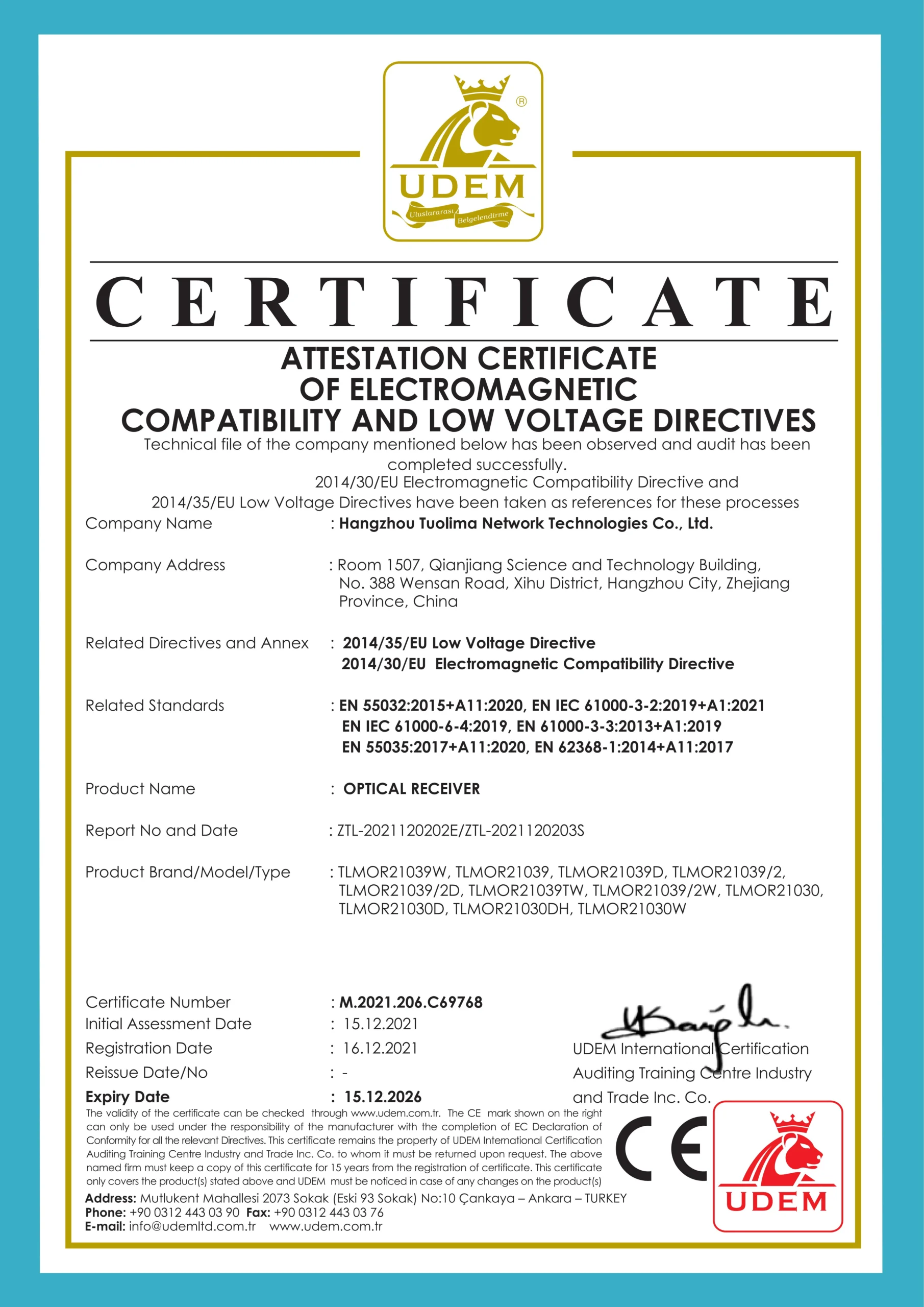 Trusted quality backed by global standards, ensuring every TUOLIMA product meets strict, reliable, and proven performance requirements.